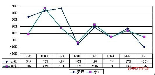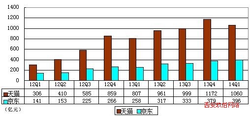天貓與京東成交額數(shù)據(jù)對比(數(shù)據(jù)來自易觀)