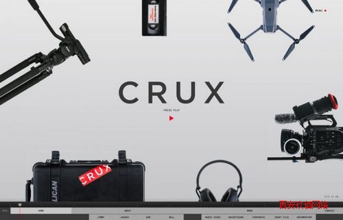 Crux 更是開放式布局的網站典型。首頁上各種元素圍繞著中心平鋪在頁面的周圍,隨著滾動整個布局被重置,網站導航被至于底部,如同視頻剪輯工具中的進度條一樣為用戶說明所處的位置。想要讓網站有趣隨性到這個程度,恐怕只有開放式布局才行。