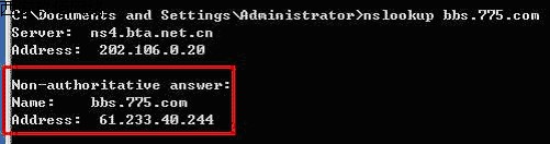 在查詢上述信息時,可使用PING命令,也可以使用nslookup命令,nslookup命令功能強大,可查詢各種信息,所以在此講述一下。