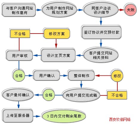 第三步:查詢申辦域名 根據(jù)企業(yè)的需要,決定是國際域名還是國內(nèi)域名。域名就是企業(yè)在網(wǎng)絡(luò)上的招牌,是一個(gè)名字,并不影響網(wǎng)站的功能和技術(shù)。如果是登記國際域名的話,就必須向國際互聯(lián)網(wǎng)絡(luò)管理中心申請;國內(nèi)域名則向中國互聯(lián)網(wǎng)服務(wù)中心登記。 第四步:網(wǎng)站系統(tǒng)規(guī)劃 網(wǎng)站是發(fā)布公司產(chǎn)品與服務(wù)信息的平臺,所以網(wǎng)站內(nèi)容非常重要。一個(gè)好的網(wǎng)站,不僅僅是一本網(wǎng)絡(luò)版的企業(yè)全貌和產(chǎn)品目錄,它還必須給網(wǎng)站瀏覽者,即企業(yè)的潛在客戶提供方便的瀏覽導(dǎo)航,合理的動態(tài)結(jié)構(gòu)設(shè)計(jì),適合企業(yè)商務(wù)發(fā)展的功能構(gòu)件,如信息發(fā)布系統(tǒng)、產(chǎn)品展示系統(tǒng)等,豐富實(shí)用的資訊和互動空間。我們將根據(jù)客戶的簡單材料,精心進(jìn)行規(guī)劃,提交出一份網(wǎng)站建設(shè)方案書。 第五步:確定合作 雙方以面談、電話或電子郵件等方式,針對項(xiàng)目內(nèi)容和具體需求進(jìn)行協(xié)商。雙方認(rèn)可后,簽署《網(wǎng)站建設(shè)合同書》并支付50%網(wǎng)站建設(shè)預(yù)付款。 第六步:網(wǎng)站內(nèi)容整理 根據(jù)網(wǎng)站建設(shè)方案書,由客戶組織出一份與企業(yè)網(wǎng)站欄目相關(guān)的內(nèi)容材料(電子文檔文字和圖片等),我們將對相關(guān)文字和圖片進(jìn)行詳細(xì)的處理、設(shè)計(jì)、排版、掃描、制作,這一過程需要客戶給予積極的配合。 第七步:網(wǎng)頁設(shè)計(jì)、制作、修改 一旦網(wǎng)站的內(nèi)容與結(jié)構(gòu)確定了,下一步的工作就是進(jìn)行網(wǎng)頁的設(shè)計(jì)和程序的開發(fā)。網(wǎng)頁設(shè)計(jì)關(guān)乎企業(yè)的形象,一個(gè)好的網(wǎng)頁設(shè)計(jì),能夠在信息發(fā)布的同時(shí)對公司的意念以及宗旨作出準(zhǔn)確的詮釋。很多國際大型公司都不惜花費(fèi)巨大的投入在網(wǎng)頁的設(shè)計(jì)上。我們擁有專業(yè)的技術(shù)人員,將給您提供最專業(yè)的網(wǎng)頁設(shè)計(jì),使您的網(wǎng)站表現(xiàn)不凡,脫穎而出。 第八步:網(wǎng)站提交客戶審核并發(fā)布 網(wǎng)站設(shè)計(jì)、制作、修改、程序開發(fā)完成后,提交給客戶審核,客戶確認(rèn)后,支付網(wǎng)站建設(shè)余款。同時(shí),網(wǎng)站程序及相關(guān)文件上傳到網(wǎng)站運(yùn)行的服務(wù)器,至此網(wǎng)上正式開通并對外發(fā)布。 第九步:網(wǎng)站網(wǎng)站推廣及后期維護(hù) 在網(wǎng)絡(luò)上建立了一個(gè)家,是企業(yè)上網(wǎng)的一個(gè)重要標(biāo)志,但還不等于說就可以大功告成了。因?yàn)橐粋(gè)設(shè)計(jì)新穎,功能齊全的網(wǎng)站,如果沒有人來看就起不到應(yīng)有的作用了。為了能讓更多的人來瀏覽企業(yè)的網(wǎng)站,必須有一個(gè)詳盡而專業(yè)的網(wǎng)站推廣方案,包括著名網(wǎng)絡(luò)搜索引擎登錄,網(wǎng)絡(luò)廣告發(fā)布,郵件群發(fā)推廣,Logo互換鏈接等等。這一部分尤其重要,專業(yè)的網(wǎng)絡(luò)營銷推廣策劃必不可少。西安玖佰網(wǎng)絡(luò)可給您提供國內(nèi)外搜索引擎登陸服務(wù)、門戶網(wǎng)站分類廣告、分布式批量電子郵件廣告、電子雜志貼片等多種推廣方案。另外,我們還將根據(jù)您具體的需要,按您的要求和授權(quán),對您的網(wǎng)站頁面和內(nèi)容進(jìn)行適當(dāng)?shù)男薷摹⒏隆⒕S護(hù)服務(wù)。