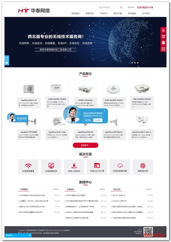 陜西華泰網絡科技工程有限公司成立于2017年,公司成立以來一直致力于為企事業單位解決無線網絡系統的集成與建設。多年的無線網絡建設經驗,已經成功為多家企事業單位建設了無線網絡相關項目,并得到用戶的一致好評。 歡迎訪問華泰網絡官方網站:http://www.sxhtwl.net/
